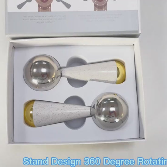 2 × stainless-steel 360° rotating facial globes (gold finish)