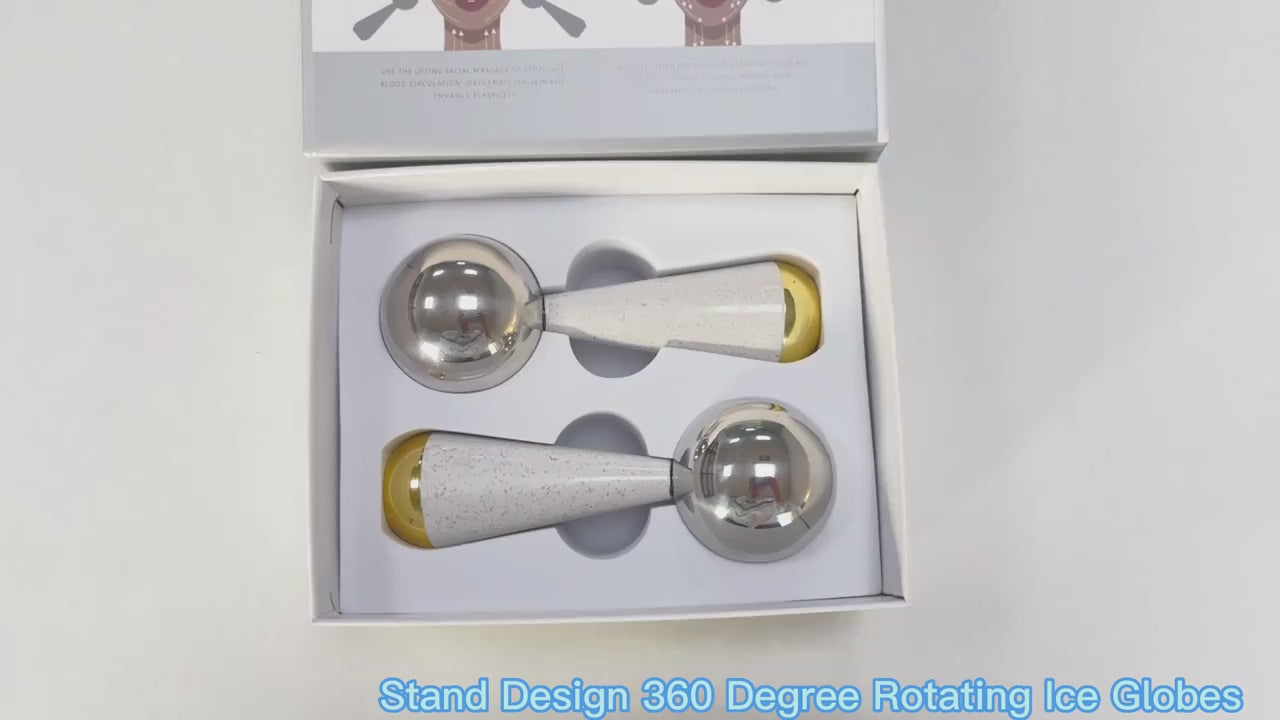 Our durable stainless-steel globes (360° rotating) deliver an instant fresh, cooling feel that helps the skin look de-puffed and visibly more refined — no spa visit needed.